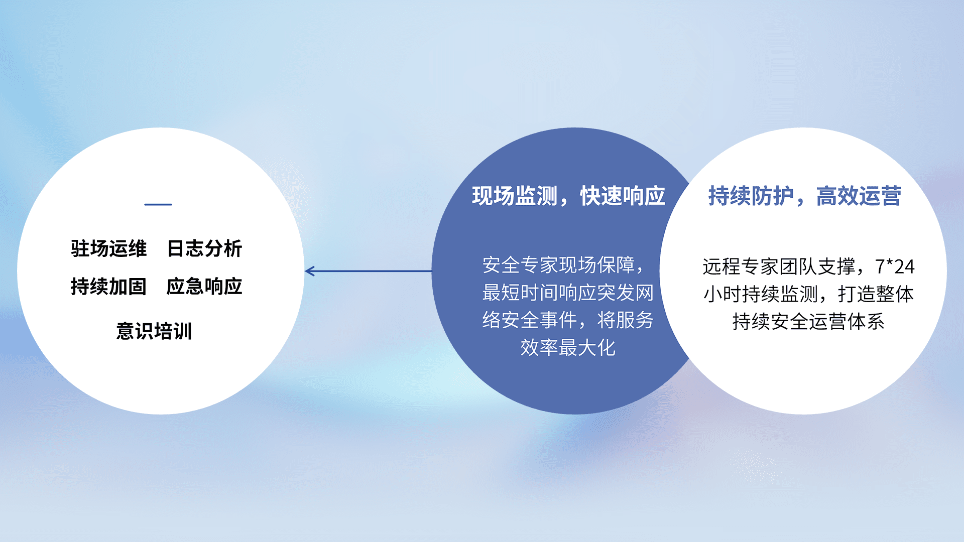针对客户行业特性,,,,提供专属的一站式安全管理服务,,帮助客户全面感知网络空间威胁,,通过安全专家的线上、、、、线下防护支持,,,实现风险闭环,,,将安全保障常态化,,为客户打造常态化安全运维运营服务。。