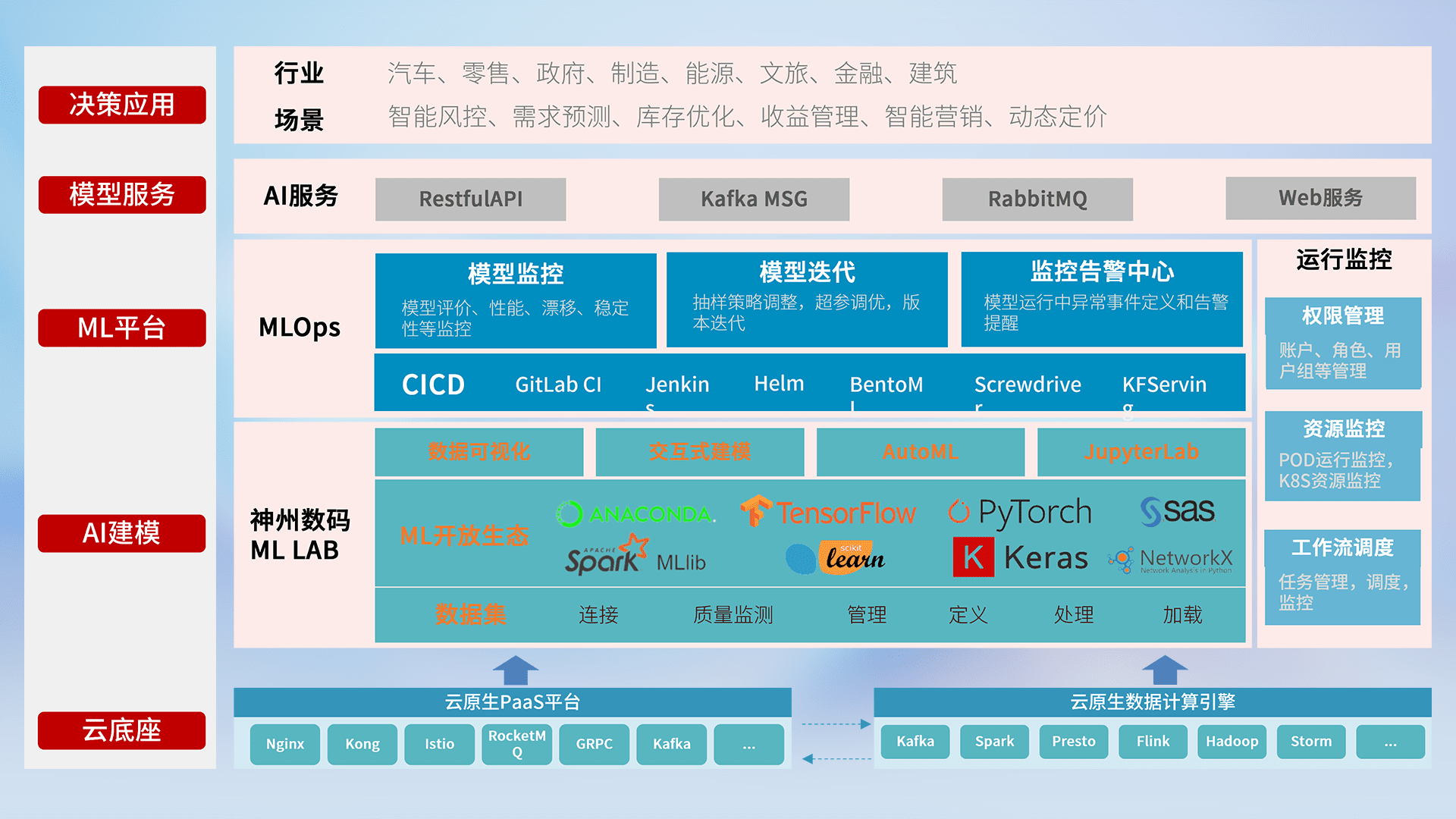 数据+模型双引擎驱动,,面向智能服务场景,,,,快速灵活利用AI技术,,支持业务决策,,,助力企业智能化转型破局。。